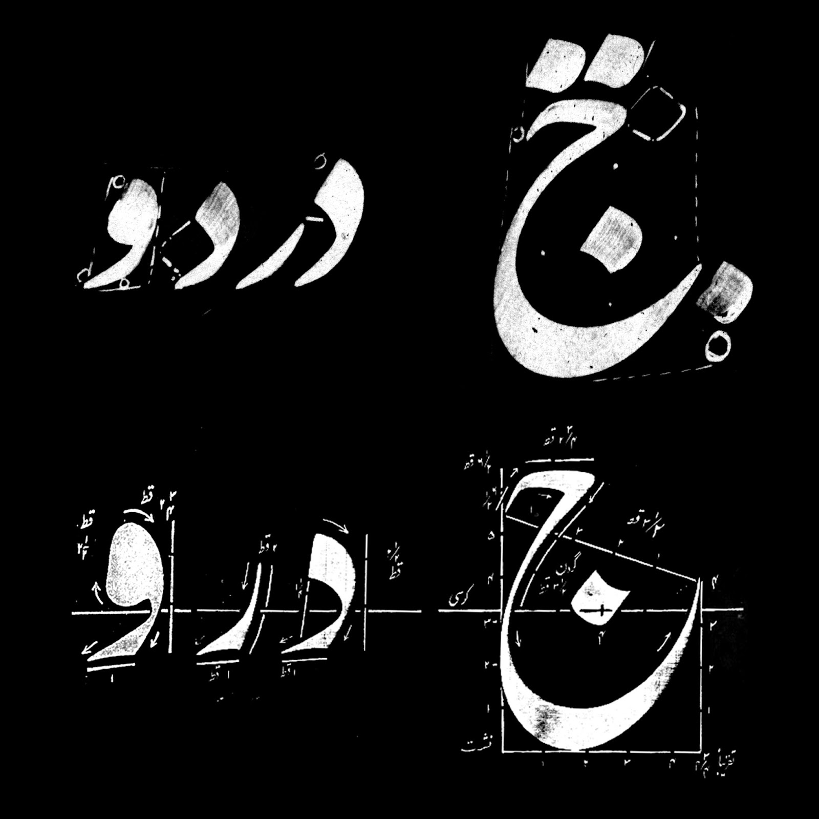 The design of Gulzar was inspired by carefully collected specimens of Urdu calligraphy and lettering which were closely studied to achieve an accurate representation of the Urdu flavour of the Nasta’liq style (Fig 2).
