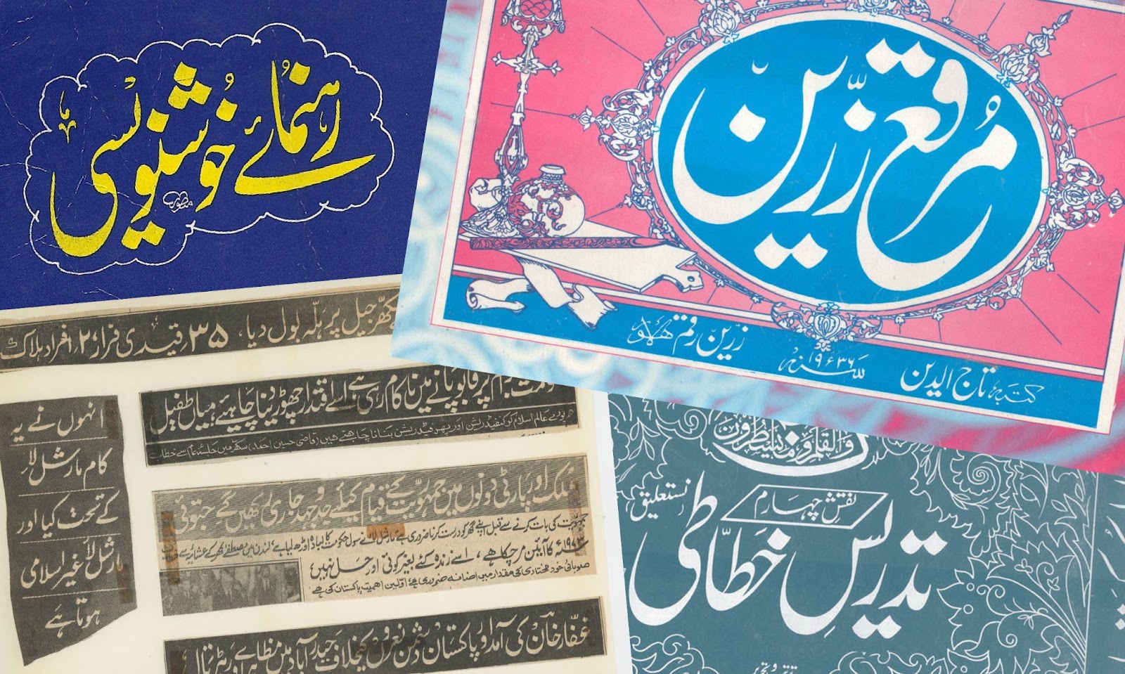 Fig 1. Various Urdu Nasta’liq calligraphy and lettering specimens